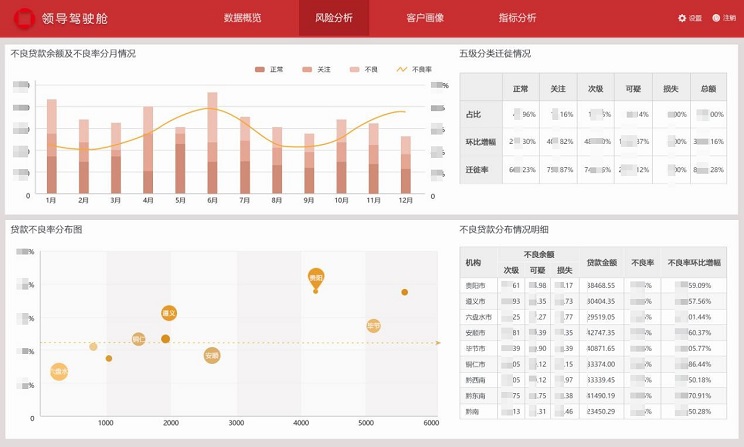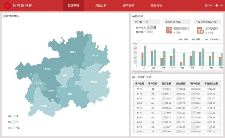 系統(tǒng)覆蓋了客戶風(fēng)險(xiǎn)月報(bào)的常用固定報(bào)表、分析報(bào)表、綜合查詢、等業(yè)務(wù)需求;同時(shí)為了滿足各級(jí)領(lǐng)導(dǎo)快速直觀地了解掌握全行客戶風(fēng)險(xiǎn)情況的需要,開(kāi)發(fā)實(shí)現(xiàn)了領(lǐng)導(dǎo)駕駛艙功能;為了滿足業(yè)務(wù)人員能夠靈活便捷地對(duì)財(cái)政收支數(shù)據(jù)進(jìn)一步分析,開(kāi)發(fā)實(shí)現(xiàn)了自助分析功能。