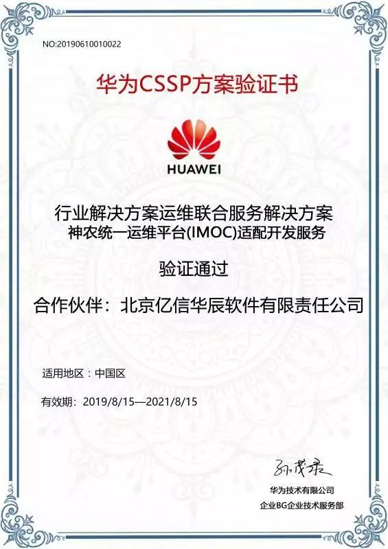 近期,億信華辰還通過(guò)華為IMOC適配開(kāi)發(fā)服務(wù)的CSSP伙伴認(rèn)證。這也意味著我們與華為有了更深入的合作,不僅是產(chǎn)品工具的合作伙伴,同時(shí)也是實(shí)施開(kāi)發(fā)服務(wù)的合作伙伴,將來(lái)可以在IMOC項(xiàng)目中提供可視化相關(guān)的實(shí)施開(kāi)發(fā)服務(wù)。
