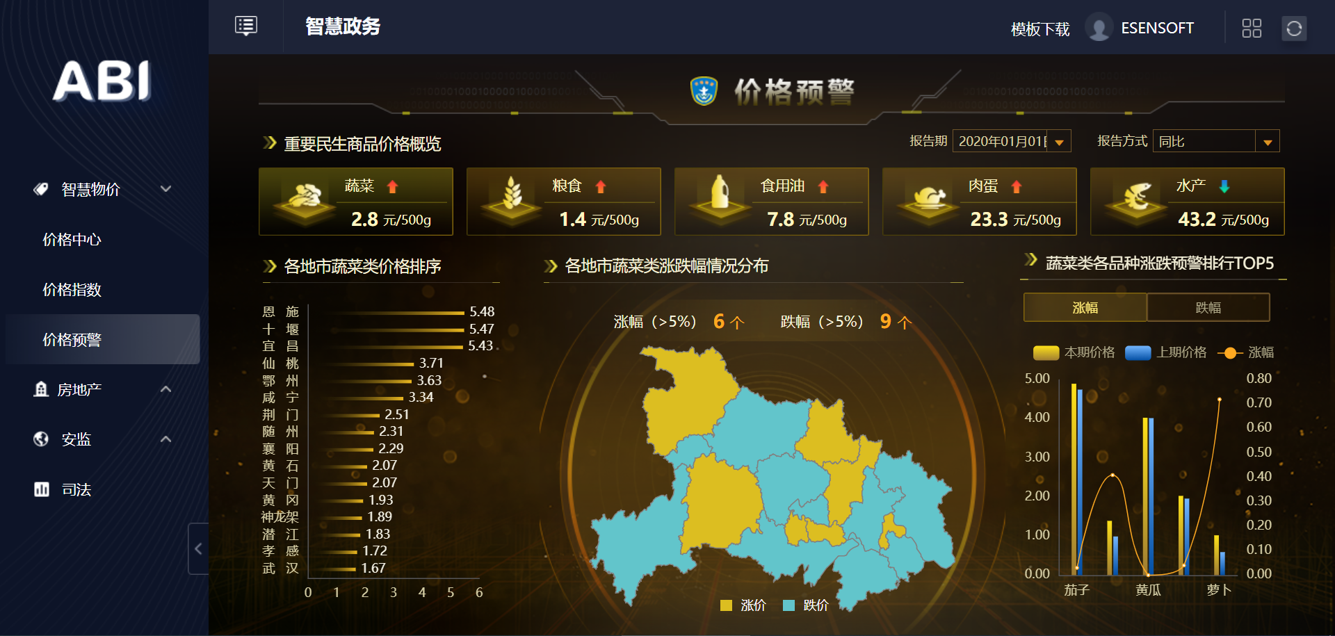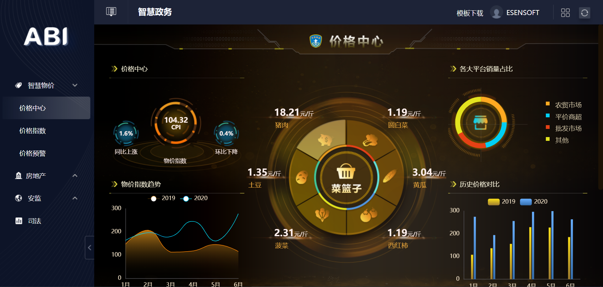 3.智慧政務(wù)大數(shù)據(jù)平臺(tái)BI系統(tǒng)-菜籃子價(jià)格監(jiān)控中心