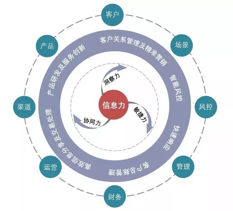 數字經濟時代對于企業而言意味著全新的挑戰和機遇,如何抓住數字經濟的本質,而不是停留在各種零碎的、華麗的詞藻堆砌,構建企業核心競爭力新的理論體系,指導企業探索一條適合自身條件的數字轉型之路,成為學術界和企業界的迫切期盼。 本文章針對數字經濟特點,既從學術層面構建了企業核心競爭力新的理論體系,也從管理實踐層面系統探討了企業該如何認知數字經濟的核心所在,以及具體的數字化轉型路徑。希望大家有所收獲。 翻天覆地的數字技術革命將人類社會帶入全新的數字經濟時代,并使得物質社會的運轉方式和特性發生了根本改變。社會非連續、跳躍式變化和高度不確定性成為這一時代的顯著特征,數字信息成為這一時代關鍵生產要素。有效獲取、控制和利用數字信息,進而降低或消除不確定性,是提升企業核心競爭力的關鍵。 數字經濟已成為全球新一輪產業競爭的制高點。2017年中國數字經濟規模就已達27.2萬億,占全年GDP的32.9%。 隨著產業與數字科技融合的日益加速,大數據、人工智能、云計算等新興數字化信息技術在應用領域的日臻成熟,企業不斷嬗變,向數字化、網絡化、智能化的方向加速演進,不斷重塑著自身的經營方式和競爭生態。 據IDC(International Data Corporation)報告顯示,全球1000強企業的67%、中國1000強企業的50%把數字化轉型作為企業戰略的核心要素之一。 面對洶涌而來的數字化浪潮,眾多企業感到措手不及,“創新者窘境”或“戰略迷茫”成為常態,他們想要加快數字化轉型卻又無從下手。 過去企業的核心競爭力如專利技術、組織運營、人力資源等都遭遇到嚴峻挑戰。在VUCA(Volatility易變性、Uncertainty不確定性、Complexity復雜性、Ambiguity模糊性)環境下,每個企業都在關注和重新審視自身的核心競爭力。 數字經濟時代企業的核心競爭力究竟是什么?該如何構建企業的核心競爭力以應對數字化時代的新挑戰?在尋找這些問題答案的過程中,我們逐漸發現,以信息技術為核心的新技術應用過程正在形成一種新的動力。 在數字時代,這種信息動力已逐步成為推動企業轉型和發展的核心驅動力,我們稱之為“信息力”。區別于企業其它核心能力,信息力具備高度動態性、交融性以及自我演進的能力,從而能夠幫助企業構建新的商業模式和生態系統,實現數字化轉型,為企業保持或形成新的競爭優勢。 01、何為信息力 信息力是在信息技術與實體經濟以前所未有的廣度和深度的交匯融合下,以數字信息為關鍵生產要素,驅動人類向數字化、網絡化、智能化發展的動力。它比工業革命以來的任何推動力都要強大,在為數字經濟帶來指數級增長的同時,永久改變著物質世界的運轉方式和運轉特性。 數字經濟時代背景下,企業加快獲得信息的速度,把握市場的力度,在高度不確定的市場環境中做出決策,并在時間與空間上圍繞信息力展開競爭。 數字時代非連續變化或者說是跳躍式變化的特征加劇了不確定性。而信息力的主導地位就表現在通過對數字化信息的及時獲取、有效控制和高效利用,降低或消除不確定性,并將數字化信息轉化為物質和能量,進而為企業構建持續發展的動力、持續盈利能力和品牌影響力等。 任何組織都是一個耗散系統,不斷與外部進行物質、能量的交換,以尋求發展壯大,而信息力使得這種交換更加快速、便捷、高效。在信息爆炸的現代社會,信息力存在于各種類型組織,如個人、企業、大眾媒體、政府機關等,只是作用強度和表現方式不同而已。 信息力的產生是數字科技快速發展和深度應用的必然結果。哈佛大學教授馬丁·韋茨曼(Martin Weitzman)認為:一種成熟經濟的長期增長是受技術進步所支配的。信息力以不斷發展的前沿科技為動力,著力于產業和數字科技的深度融合,推動數字化、網絡化、智能化,實現人、機、物三元世界(Cyber World)的交融,進而降低信息成本、增強發展質效,并帶來產業模式的變化。 隨著數字技術內涵和應用的廣度和深度不斷拓展,企業所提供的產品和服務的方式正發生根本改變,主要體現在邊際成本的快速降低和產品質量的大幅提升上。 與傳統核心競爭力如專利技術、組織運營、人力資源等不同的是,信息力具備顯著的動態性。由于信息力的形成要基于外部環境和顧客的大數據,所以信息力本身就具有自組織能力,不斷更新和疊代,從而擁有了動態演進特點。 相較于企業傳統的核心競爭力會因環境的變化消失或產生剛性缺陷,信息力的動態性能夠在一定程度上避免這個問題,它可以使企業通過可持續創新活動,獲得先動優勢,及時適應動態的市場環境,從而在VUCA環境中不斷改進、重構并提升企業的市場競爭力。 02、信息力的三維原子測度 信息力可以從洞察力、協同力和敏捷力三個維度進行測度。基于這三種原子能力,可以構建一個風扇模型,如圖1所示。 信息力風扇模型 1.洞察力 洞察力是指企業基于對數據的聚集、融合和分析而獲得的對信息的判斷能力和對未來的預見能力。洞察力體現了信息力的深度。它可以基于大數據分析,幫助企業進行預測和決策,感知客戶行為和市場環境變化,進而洞悉市場趨勢,把握商機。 2.協同力 協同力是指企業在數字化運作過程中將內外部信息通過各種渠道進行相互傳遞、流動和共享,從而形成的跨所有客戶觸點進行渠道整合和接入的能力。協同力體現了信